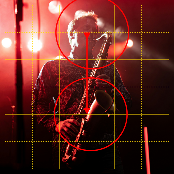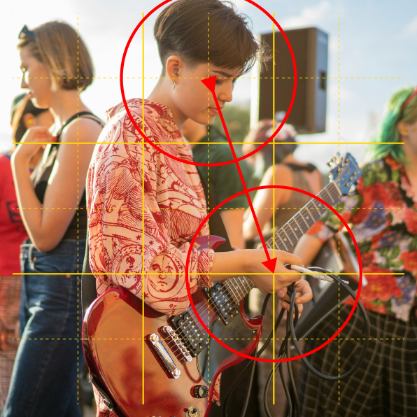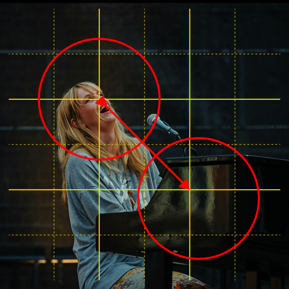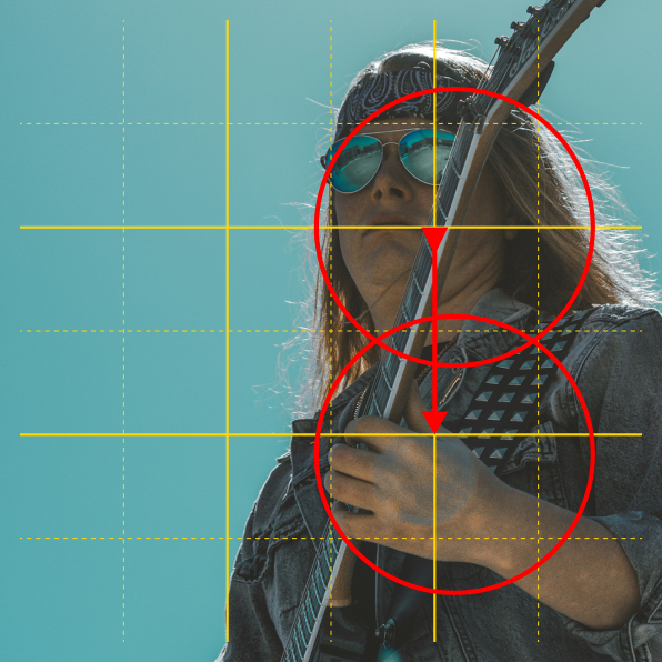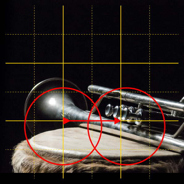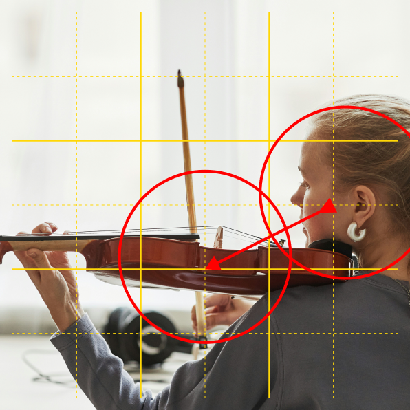 Composition and cropping of our photography is based on a 3x3 grid. We recommend placing the main focal points of the photo at the intersections of the lines. Aim to avoid any obvious symmetry.